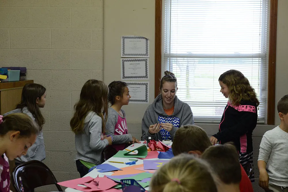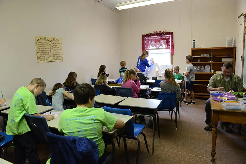 Volunteers must be going into high school or older. If they want to earn community hours they can help with set up before Bibleschool or tear down after. Or they can help serve the meals each day. Junior High or under must be enrolled.